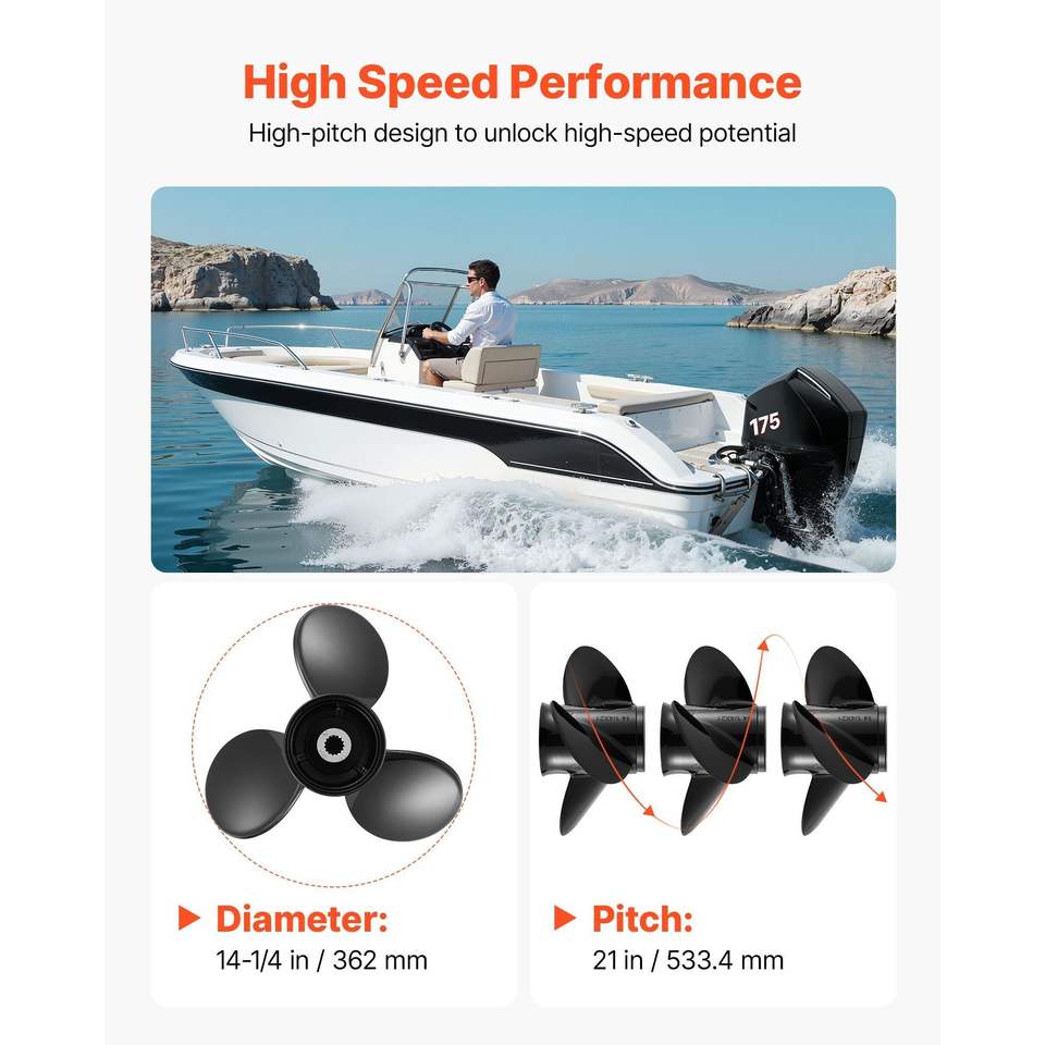 Elica Fuoribordo in Alluminio OEM Aggiornata a 15 Denti, Diametro x Passo 14 1/4x21, Modello D0100X3N2E2, Compatibile con Mercury/Mariner