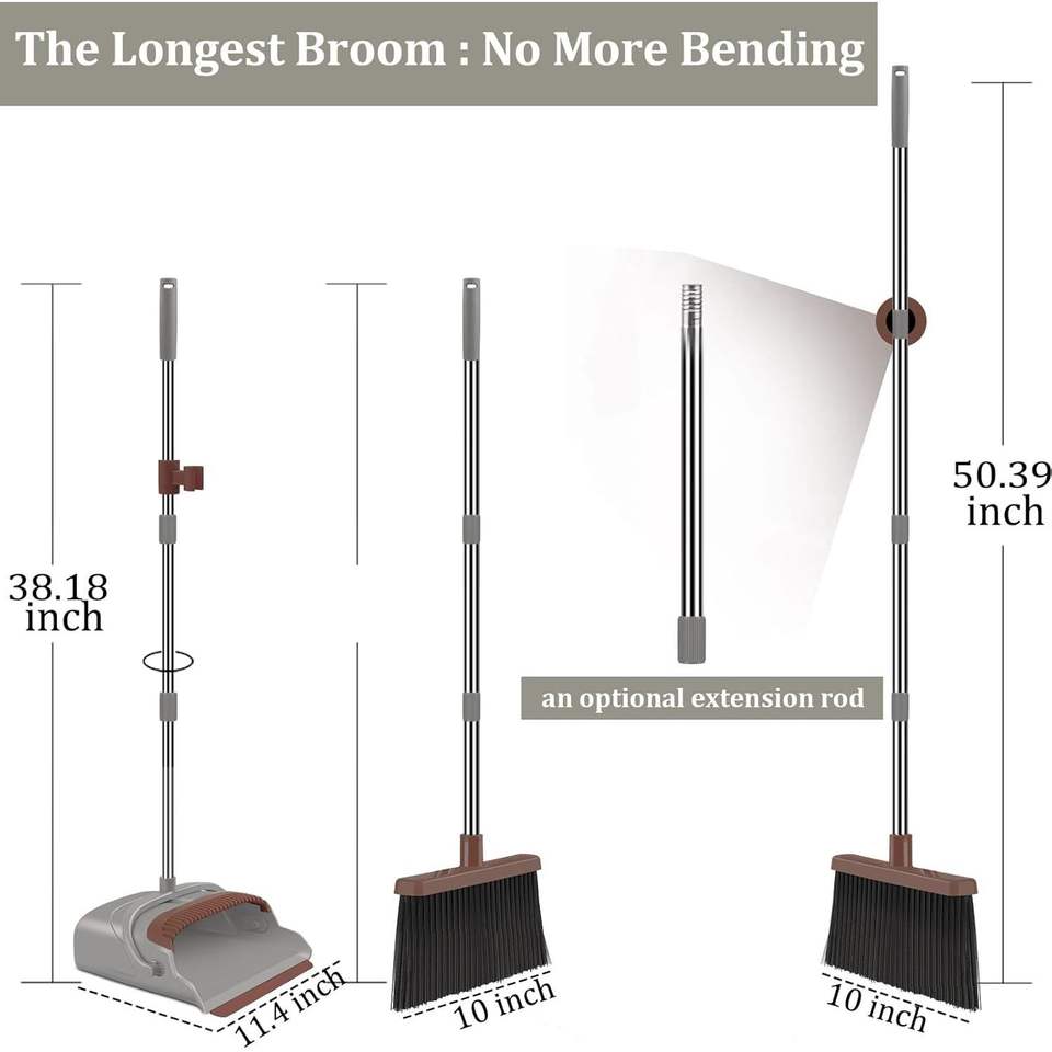 Upgrade Self-Cleaning Broom & Dustpan Set with Teeth Super Long Handle Upright Stick for Dog & Cat Pets Home Use
