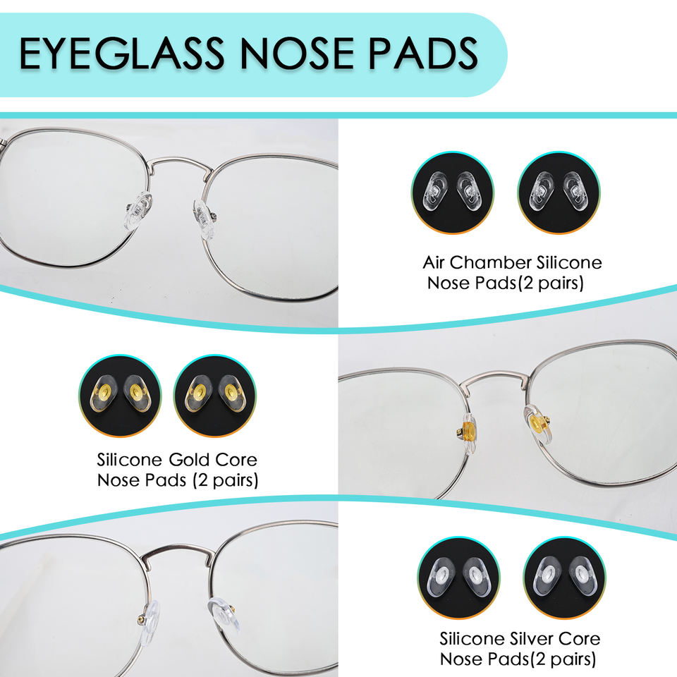 Cacciavite Magnetico, Placchetta nasale per occhiali, Pinzetta, viti, panno per la pulizia, tappo a vite, Cuscinetti auricolari, Manicotti