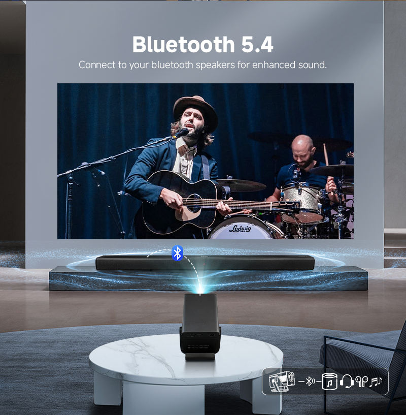 Mini proiettore WiFi Bluetooth aggiornato, supporto 1080P, sincronizzazione dello schermo del telefono tramite cavo WiFi/USB, perfetto per le attività all'aperto