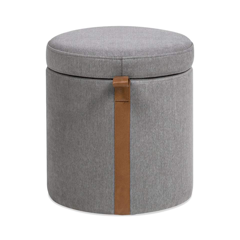 Uptown grigio 14 \ "portaoggetti rotondi in pouf Brandy rivestiti con accento in pelle eleganti sgabelli e pouf