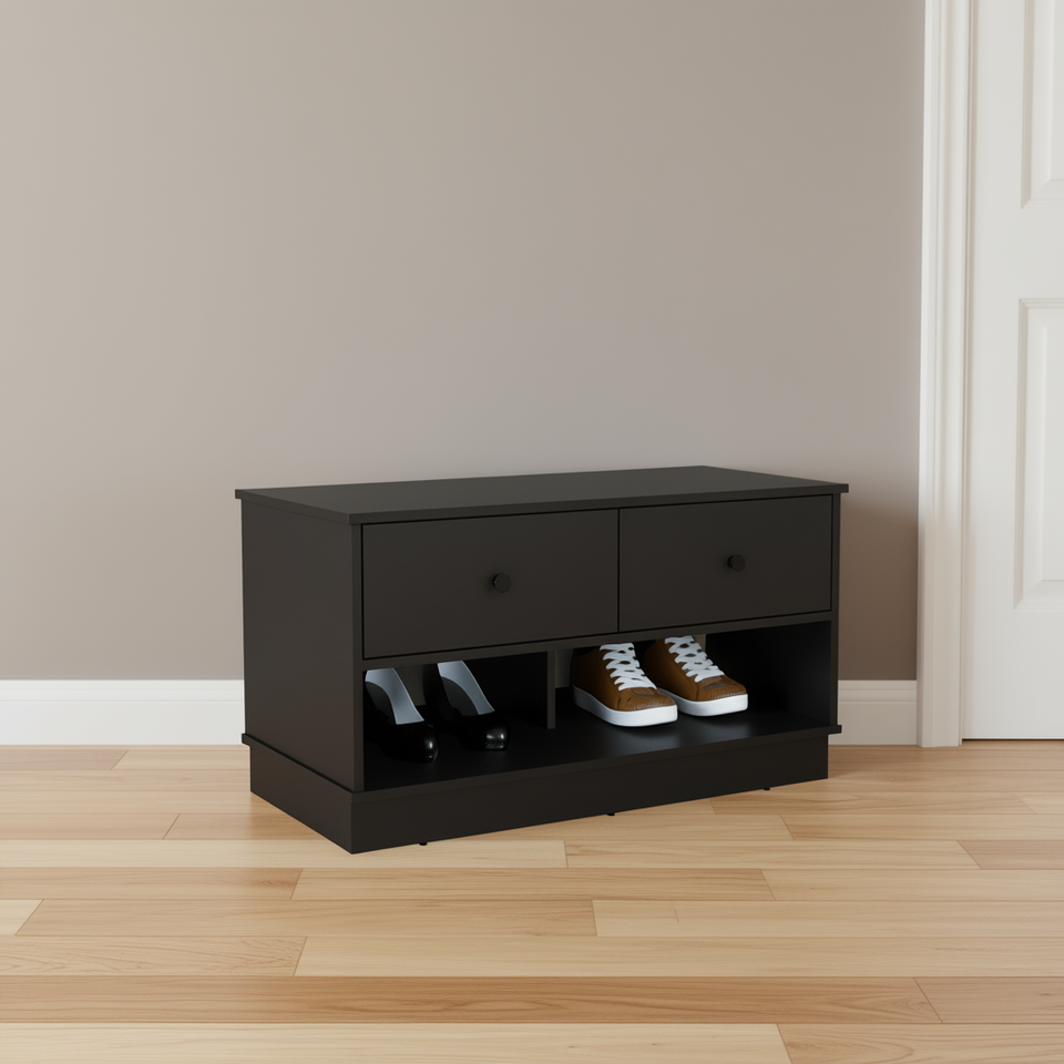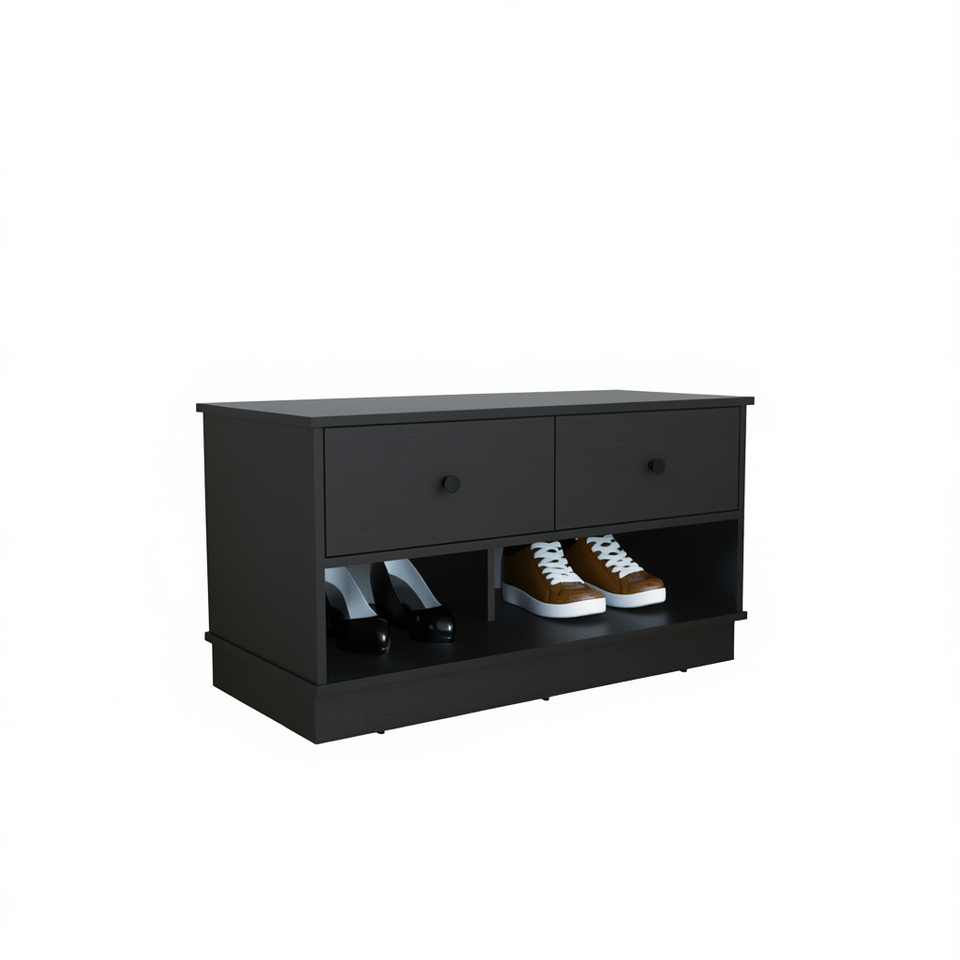 Panca contenitore DEPOT E-SHOP con due cassetti e ripiani aperti, scarpiera nera per arredamento soggiorno