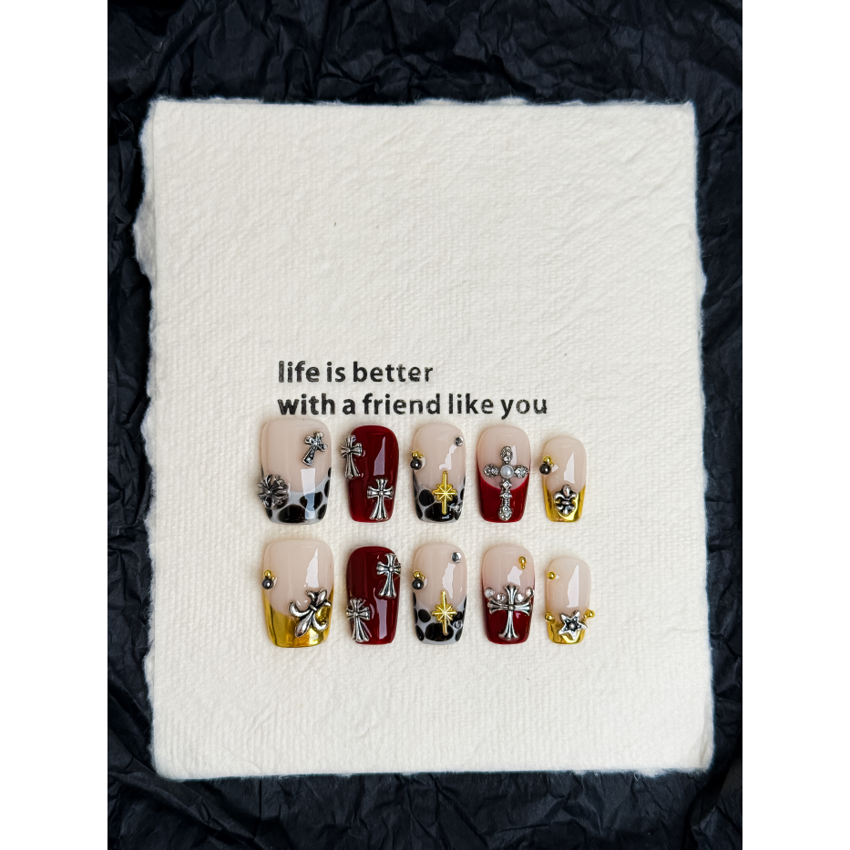 Unghie Finte Urban Relic con Design a Croce Chic per Nail Art Elegante