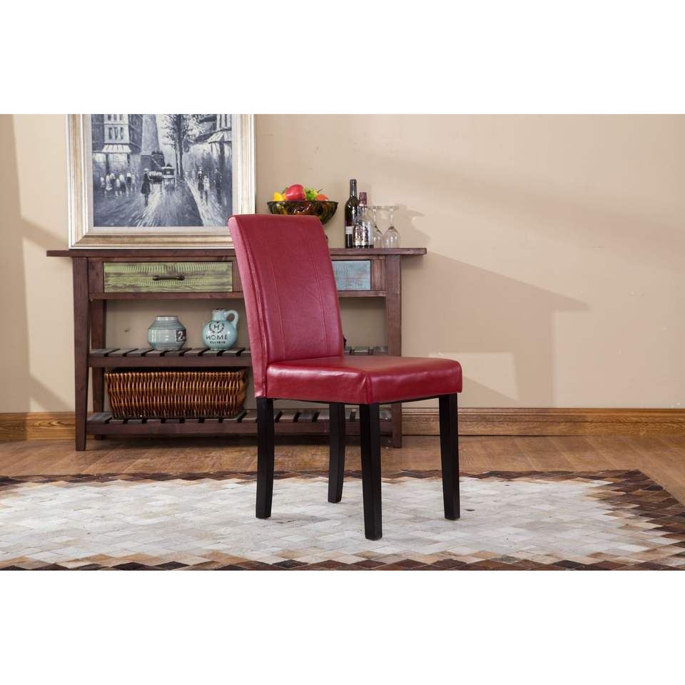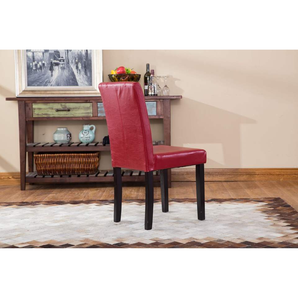 Urban Style Solid Wood Leatherette Padded Parson Chair Red Set of 2 for Dining Room