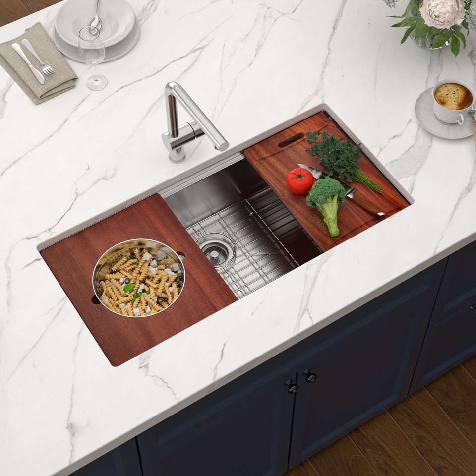 Lavello da cucina a incasso singolo in acciaio inossidabile con tagliere e ciotola per formaggio, modello Workstation, spedizione da magazzino USA