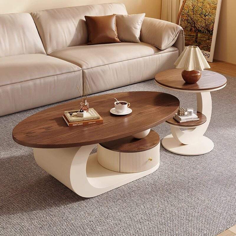 Tavolino da Caffè in Stile Medievale Usato per Soggiorno, Uso Domestico, Appartamento Piccolo, Colore Noce, Sensazione di Lusso, con Spazio Contenitore