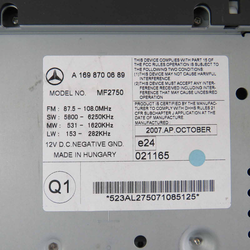 Autoradio CD Usata Mercedes Classe A Mk2 W169 04-12 A1698700689 (52971)
