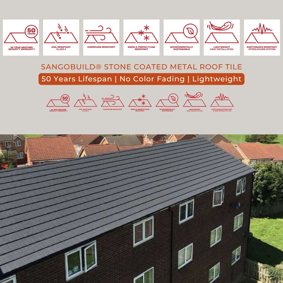 Sangobuild Metal Roof Tiles benefits:No Fading,Easy Installation,No Rust,No Sand Fall off