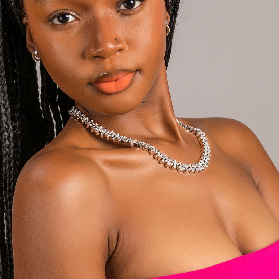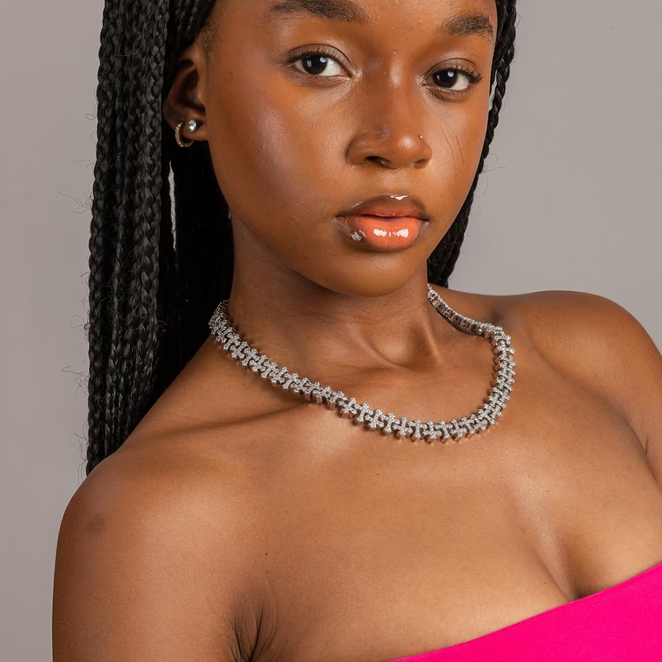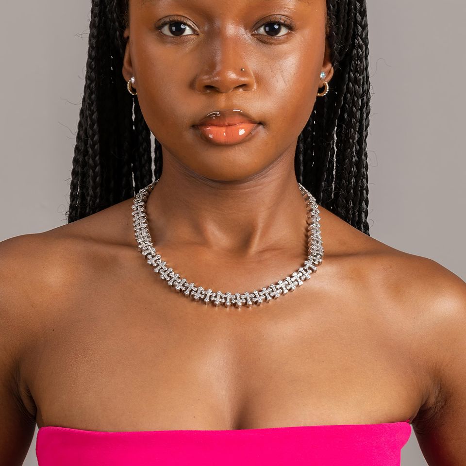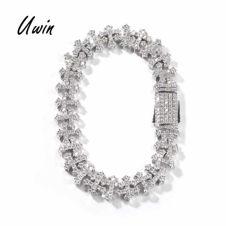 Uwin Nuovo Arrivo Moda Bling Bling Gioielli con Croce in Zirconia Cubica da Donna, Cavigliera, Bracciale a Polsino con Mini Croci a Grappolo e Collana per Uomini e Donne