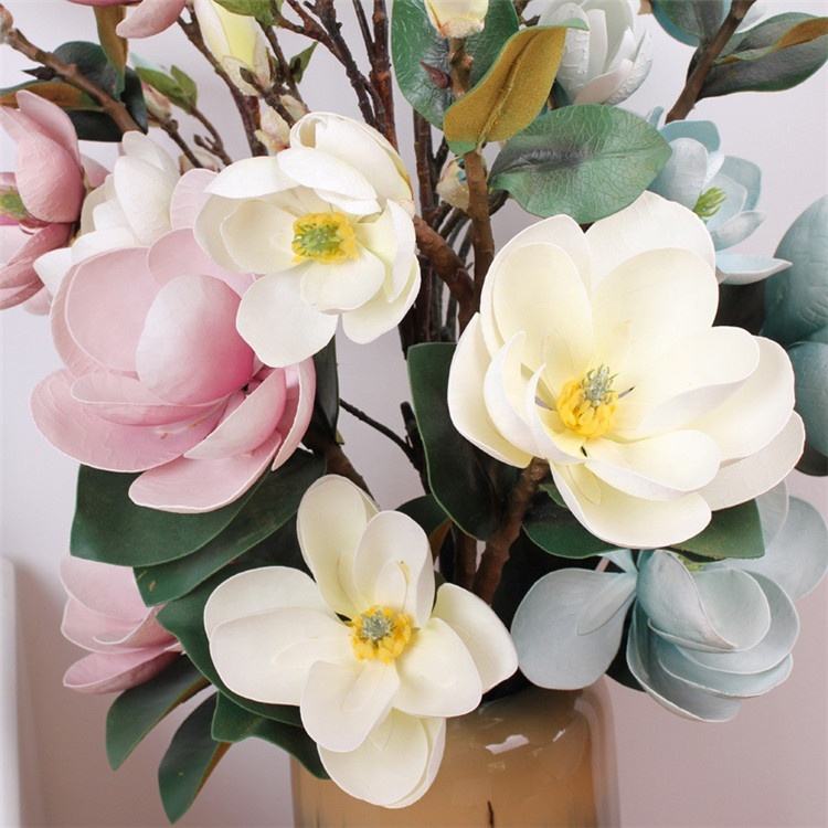 Nome del prodotto:Fiore artificiale Magnolia in lattice con foglie verdi
