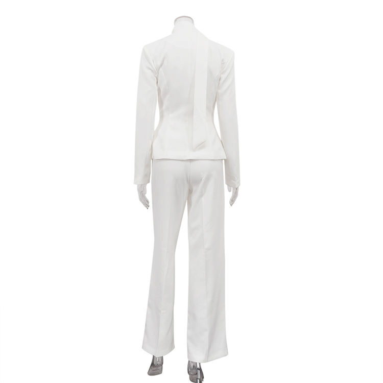 V Neck Tied Blazer And Trouser Two Piece White Formal Outfits Spring Women's Clothes Ladies Suits Office Wear