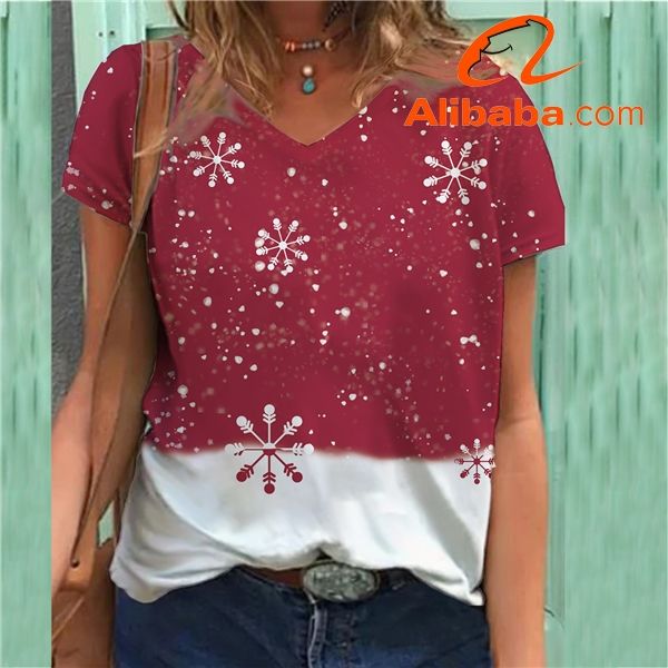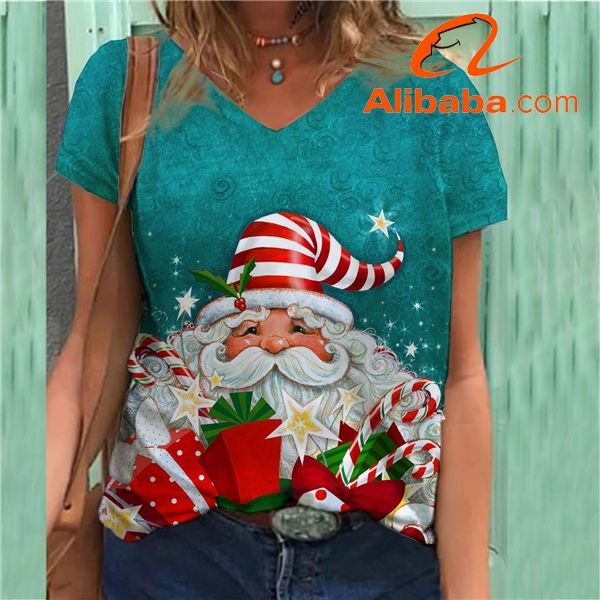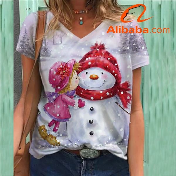 V Neck Women T Shirts Christmas Women's T-Shirt Female White Blank Tee Clothes Team Party Ladies Custom Print Tshirt Oversize