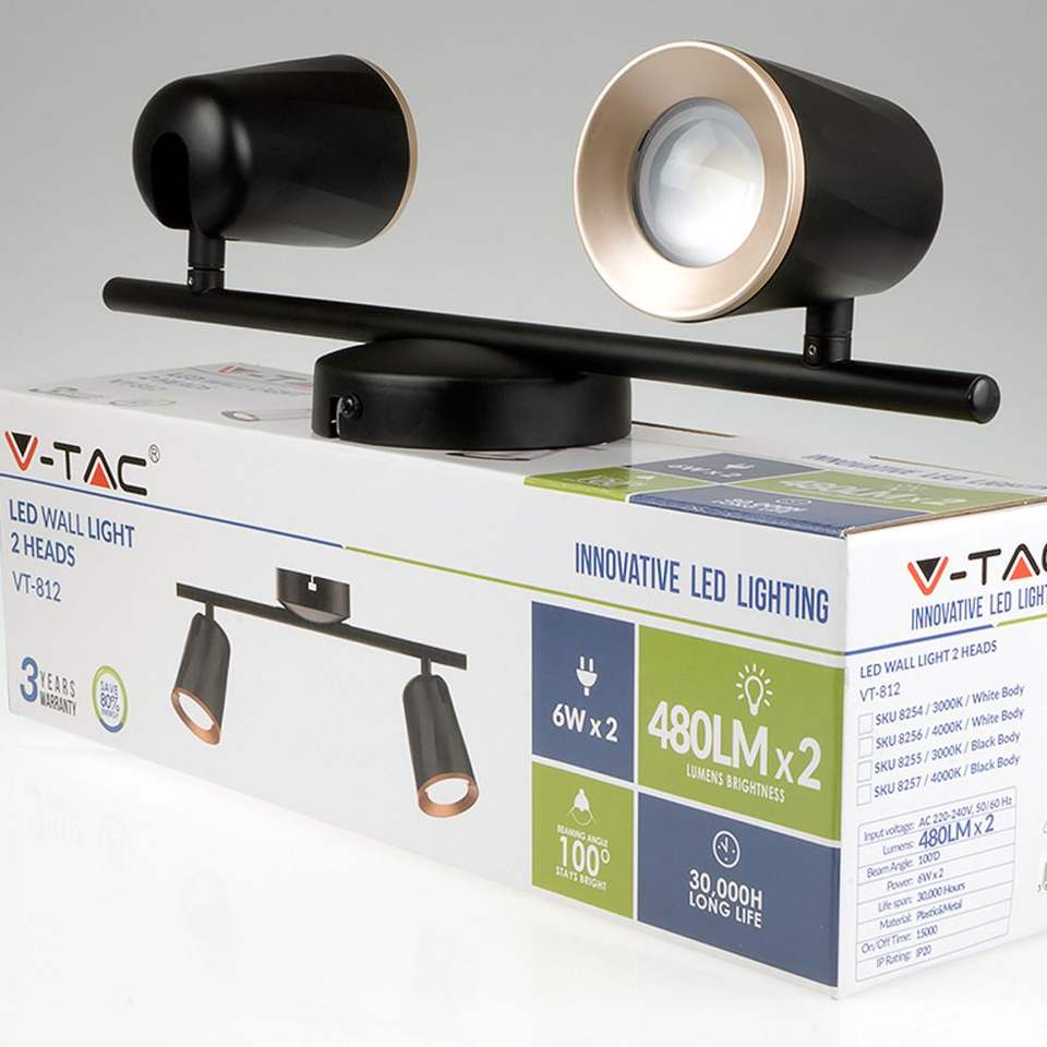 V-TAC VT-812B 12W LED Wall Light Black Color 4000K Featuring 2x6W in a Stylish Design