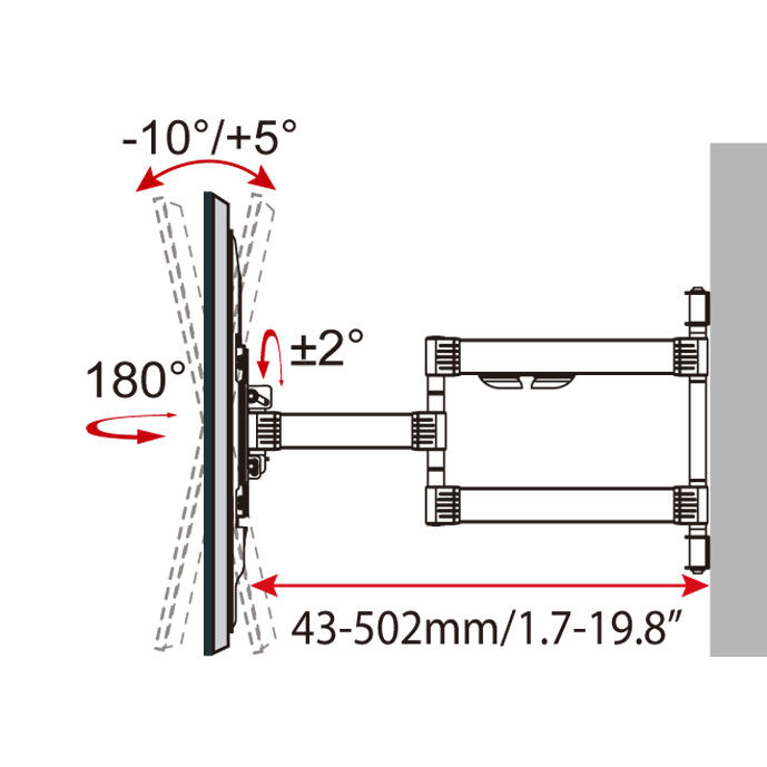 Supporto TV a Parete V-mount in Acciaio, Completamente Articolato, Regolabile Manualmente, Girevole, Compatibile con Schermi TV da 32-70 Pollici, Capacità di Carico 35kg/77lbs