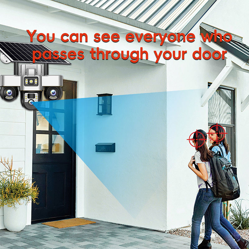 Datuo V380 PRO Telecamera esterna solare 4G/Wi‑Fi 3-lenti PTZ 1920×2160 H.265 IP66 AI audio bidirez. 8000mAh MicroSD128GB