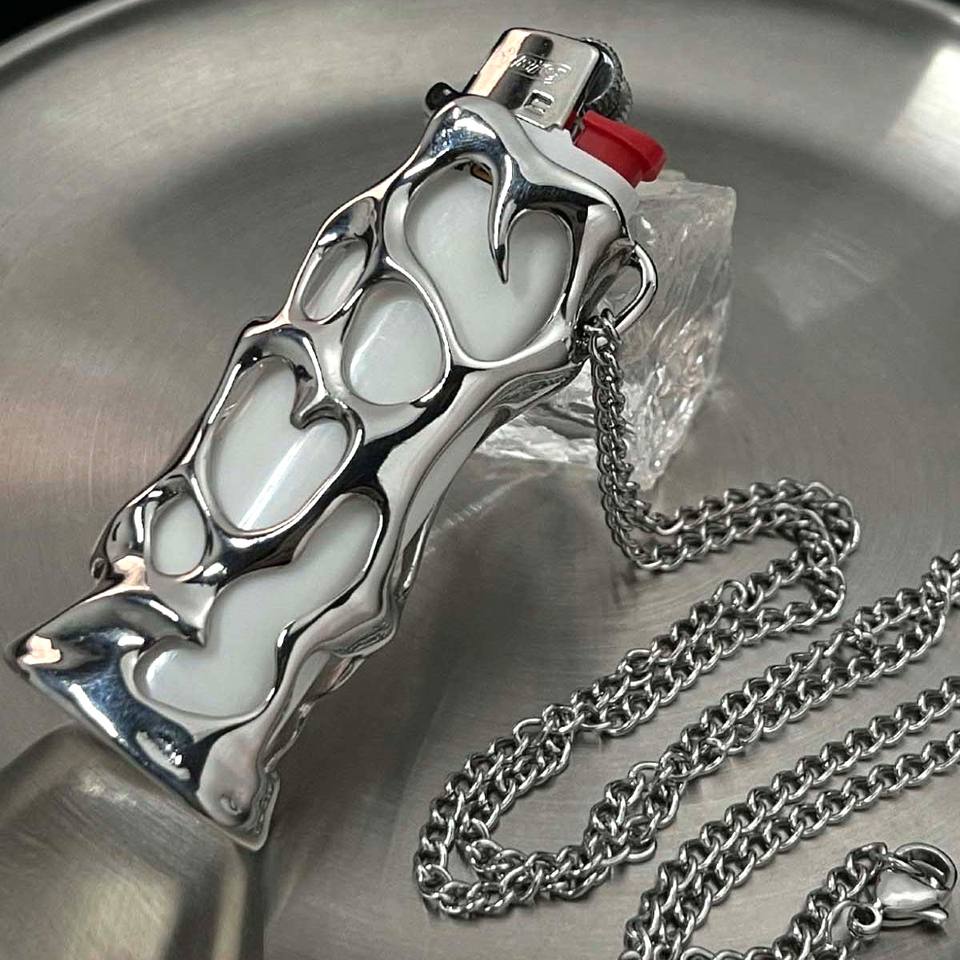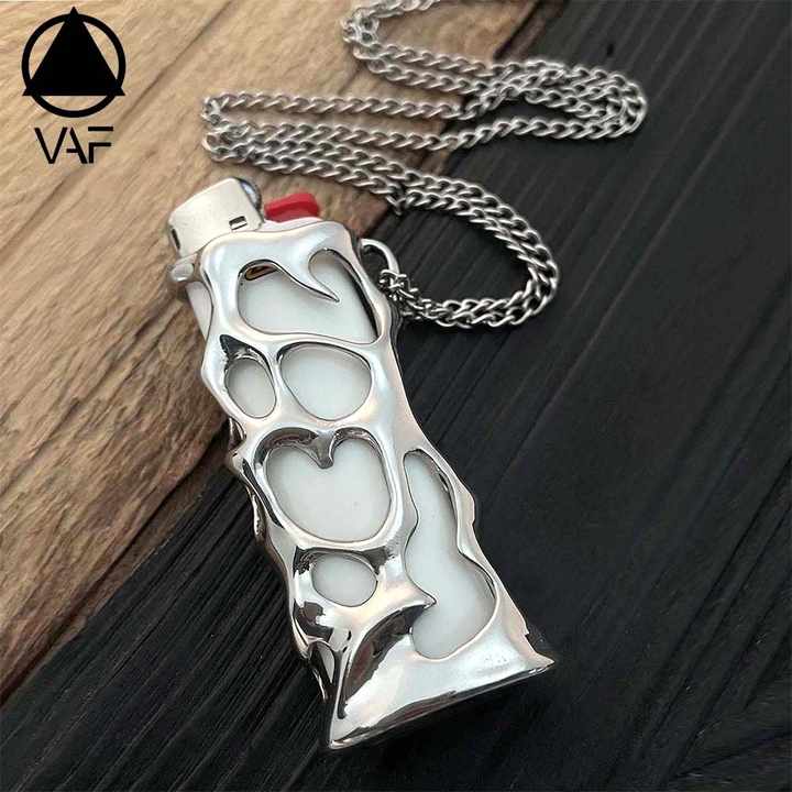 Collana con Ciondolo a Forma di Accendino VAF, Acciaio Inossidabile Lucidato, Catena da 60cm, Adatta per Accendini BIC J3