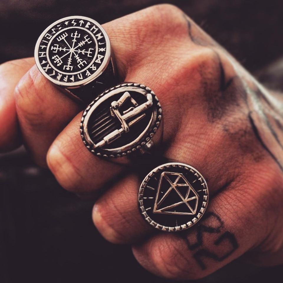 VAF Anello Massiccio da Uomo in Acciaio Inossidabile Anti-Ossidazione Stile Biker Vichingo
