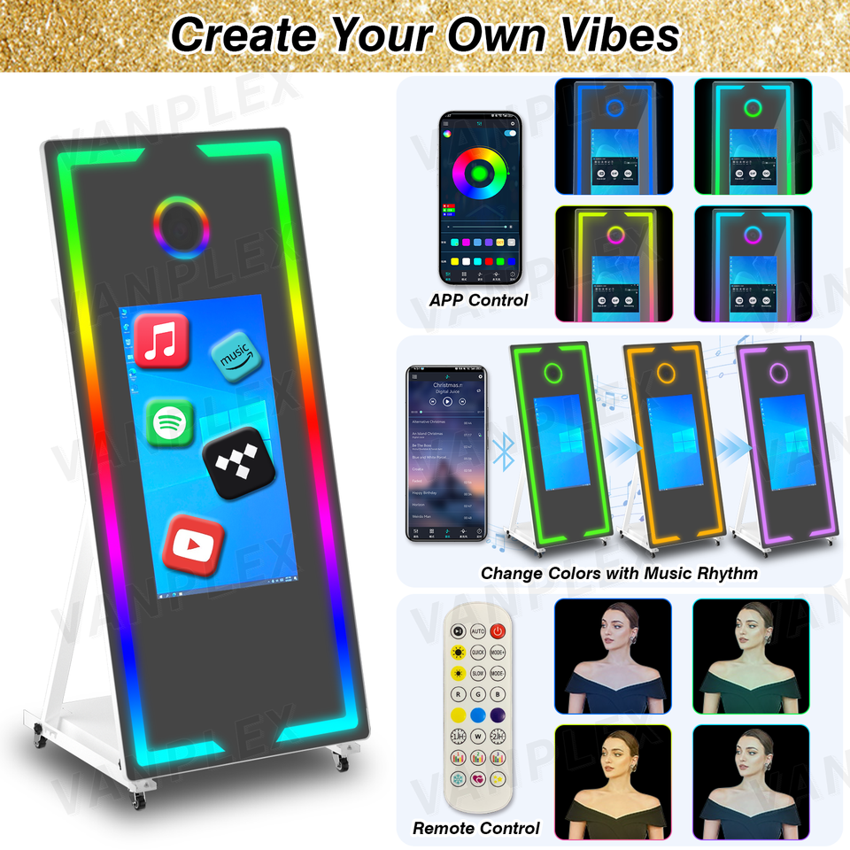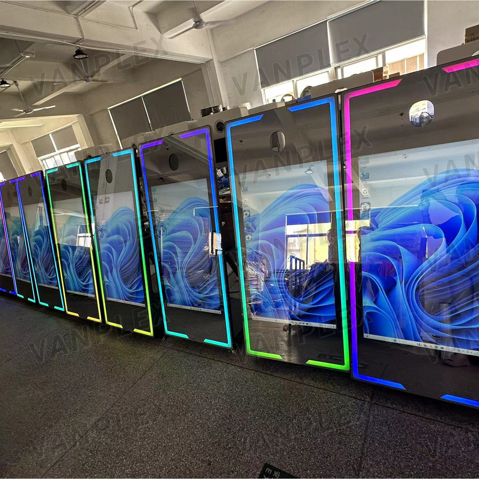Cabina Fotografica Moderna con Specchio Magico, Schermo Touch da 32-43 Pollici, Cornice LED con Luce ad Anello per Matrimoni, Feste ed Eventi a Noleggio