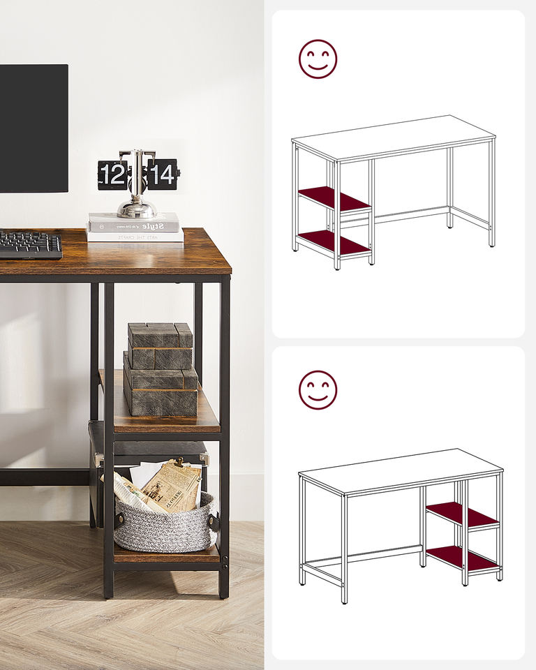 VASAGLE Scrivania Direzionale per Ufficio, Tavolo da Lavoro per Ufficio o Soggiorno, Scrivania con 2 Ripiani a Sinistra o Destra