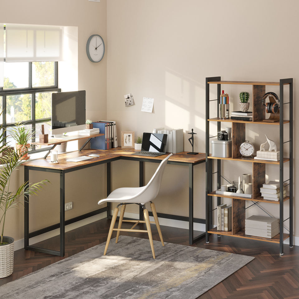 VASAGLE scrivania a forma di L con supporto dello schermo per lo studio della postazione di lavoro del computer tavolo scrivania da studio computer