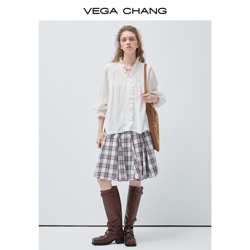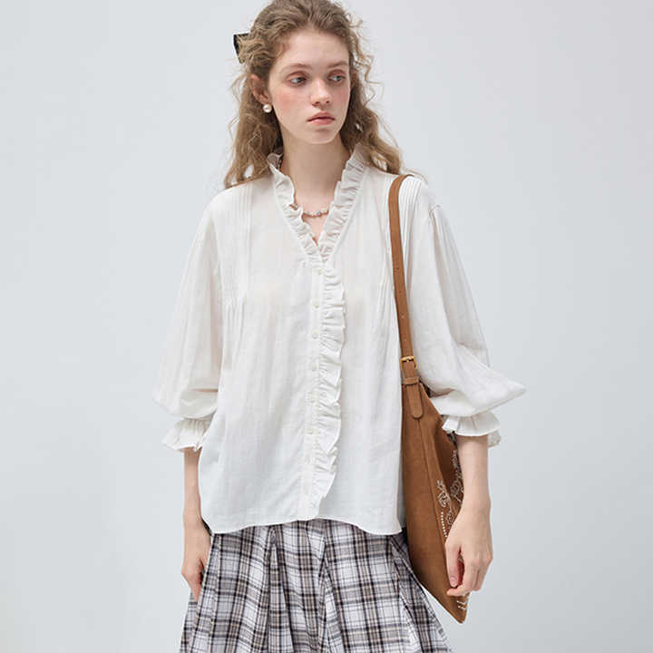 VEGA CHANG Camicetta Personalizzata Stile Country Francese con Scollo a V e Maniche a Sbuffo con Design Texturizzato per Abbigliamento Femminile all'Ingrosso