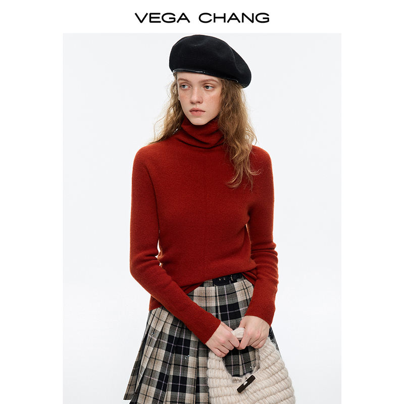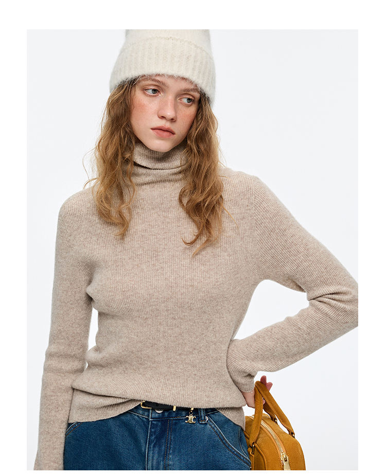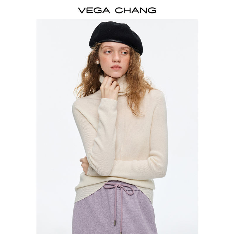 VEGA CHANG Women's Winter 100% Merino Wool High Neck Pullover Soft Cream Knit Sweater for Casual and Chic Style Outfits