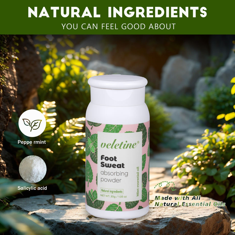 VELETINE OEM Herbal Feet Deodorant Powder 30ml Antiperspirant Foot Sweat Absorption Deodorizes Remove Odor for Men