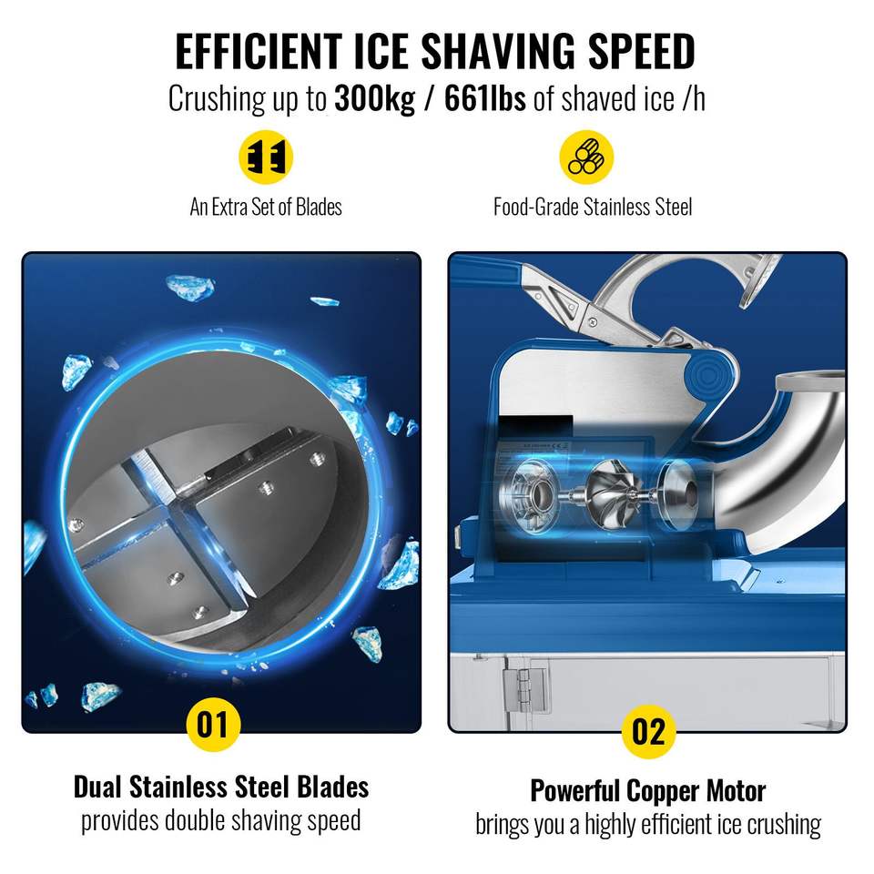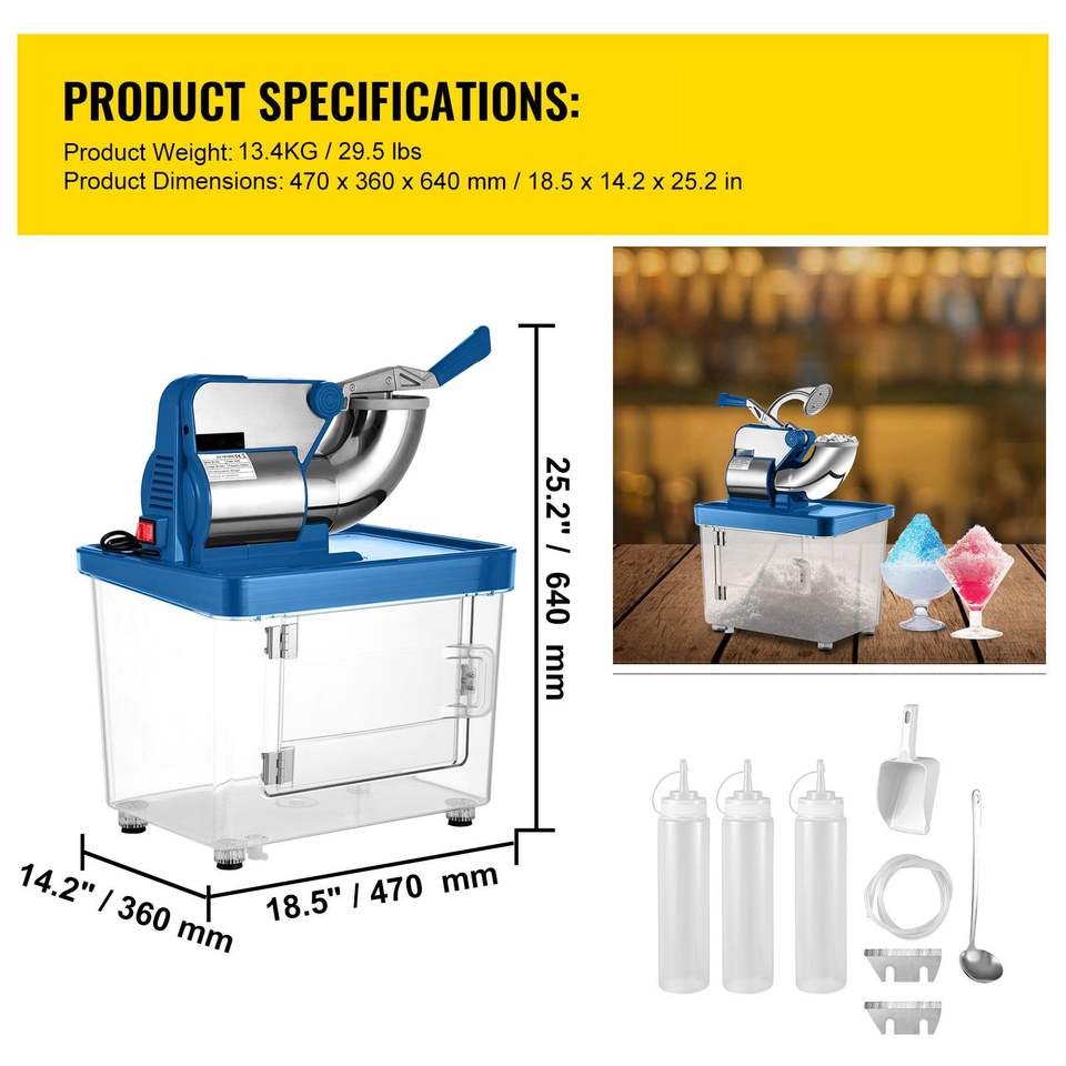 VEVO Macchina Elettrica Commerciale per Ghiaccio Tritato 110V, 440 libbre/ora, Produttore di Coni di Neve, Doppie Lame in Acciaio Inossidabile, Blu