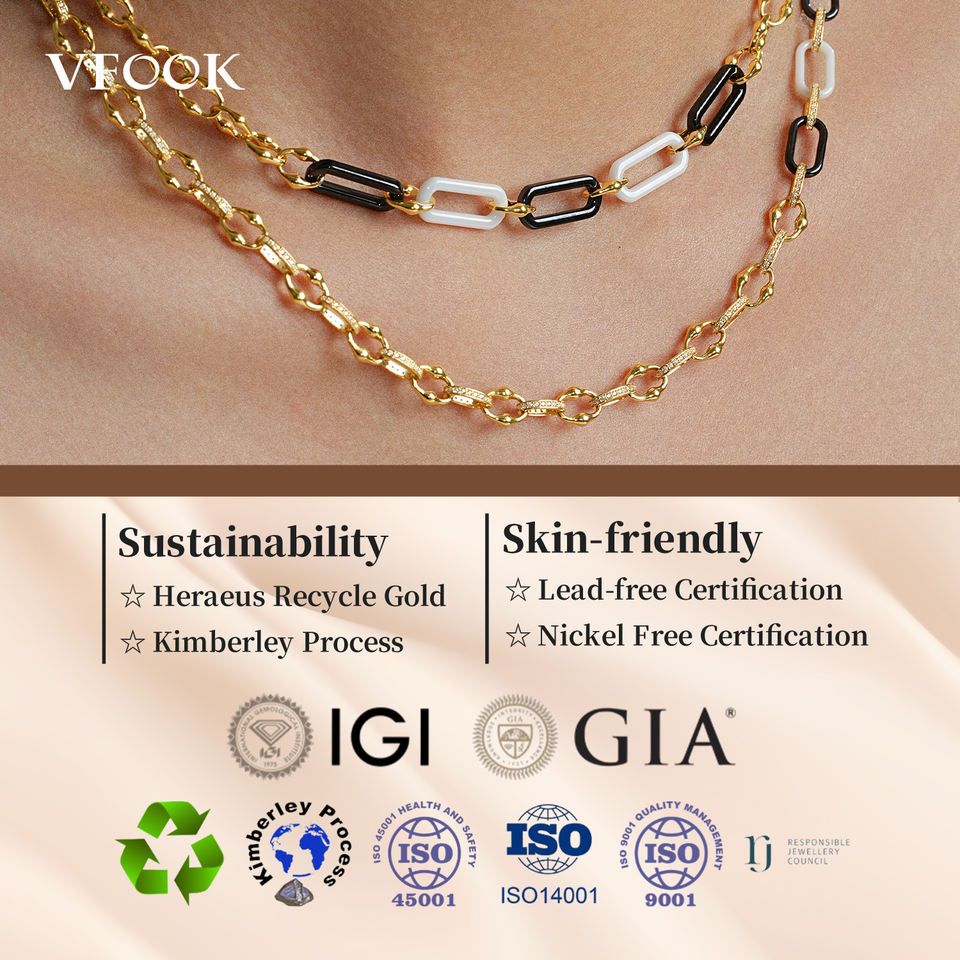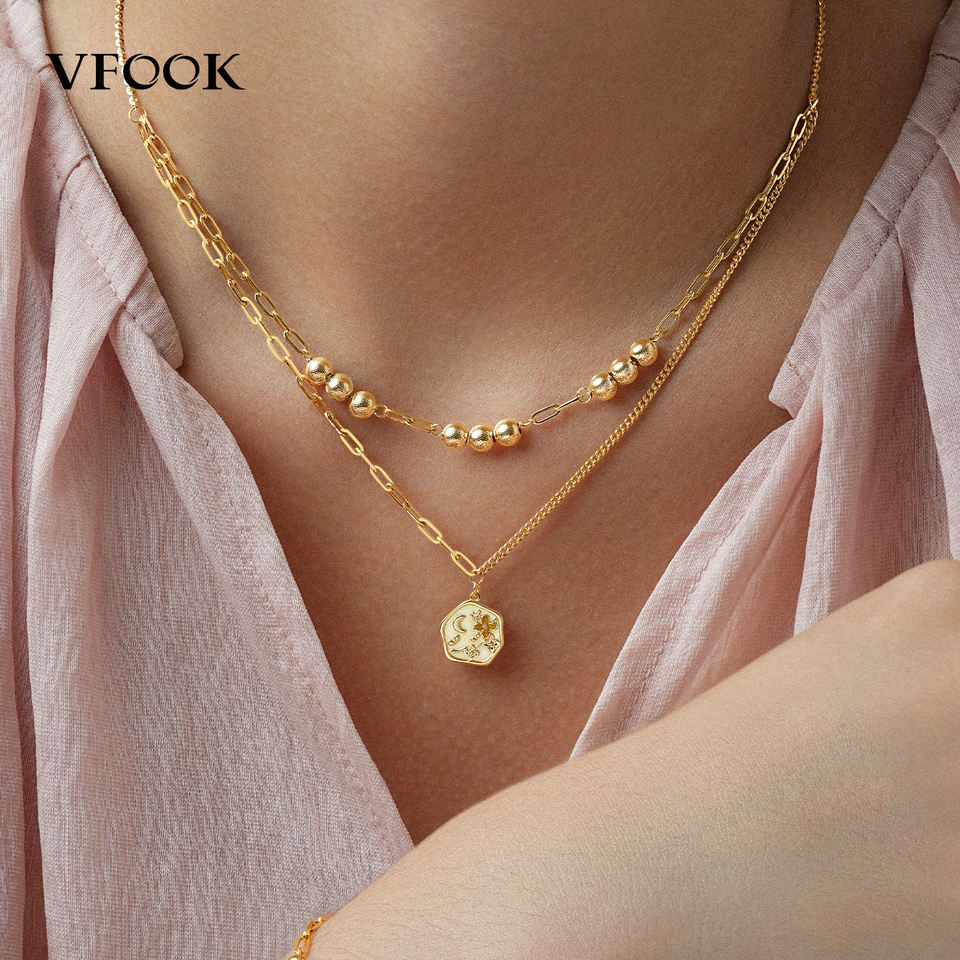 Collana VFOOK Personalizzabile a Strati con Perline, Gioielli da Donna in Oro Vero 14K/18K, Collana Moda Personalizzata per Ragazze