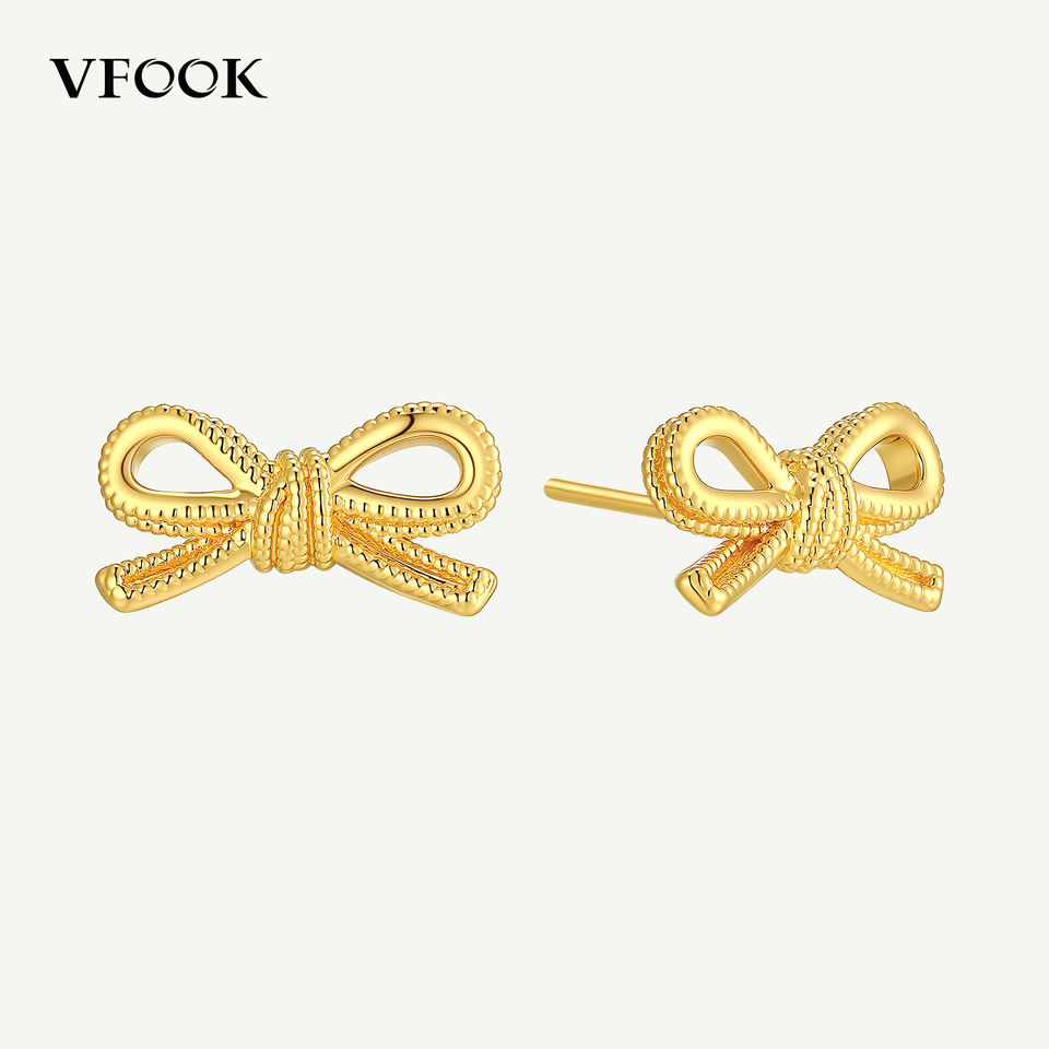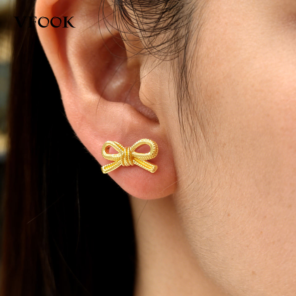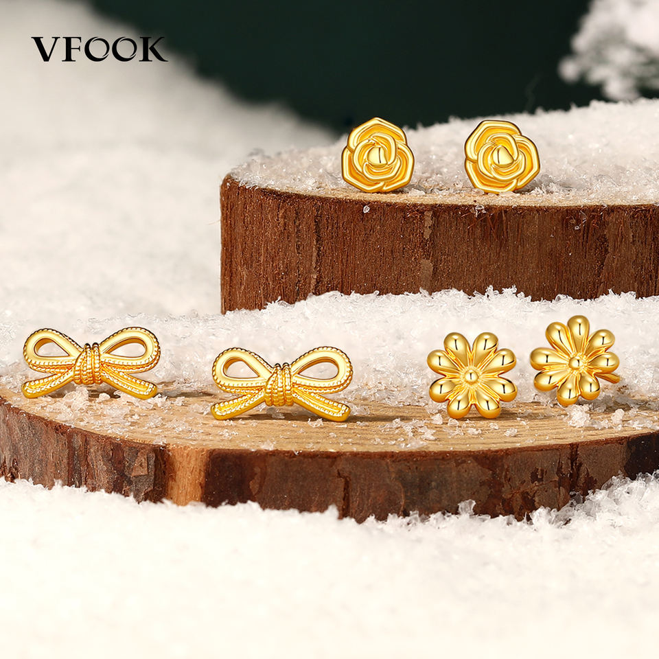Orecchini VFOOK in Oro Puro 24K con Design a Fiocco Texturizzato, Ideali per Abiti Floreali