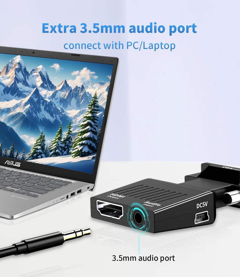Adattatore convertitore da VGA e audio da 3,5 mm a HDMI 1080p per computer, desktop, laptop, PC, monitor, proiettore, HDTV e altro ancora