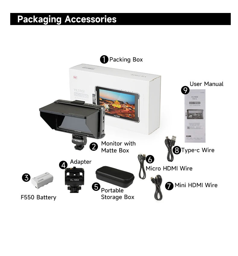 VILTROX DC-550 Pro 5.5 pollici Profissional portatile fotocamera da Studio Monitor per campo Touch Screen 3D LUT Director Monitor