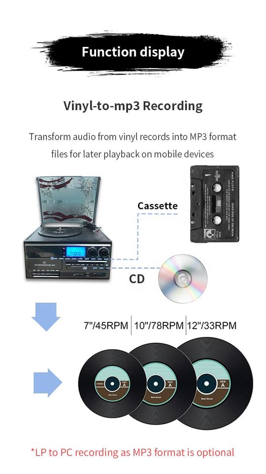 VINYL RECORD PLAYER WITH External Speakers, CD Player, USB SD Cassette Play& Record, Radio
