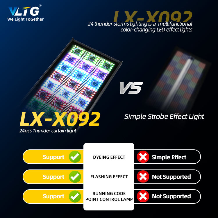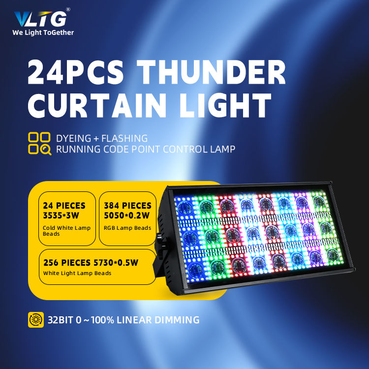 VLTG Diwali Decoration Lights 24pcs Thunder Curtain Lamp RGBW 4in1 Strobe Wash Lights 24*3W Can Point Control DMX512 Strobe