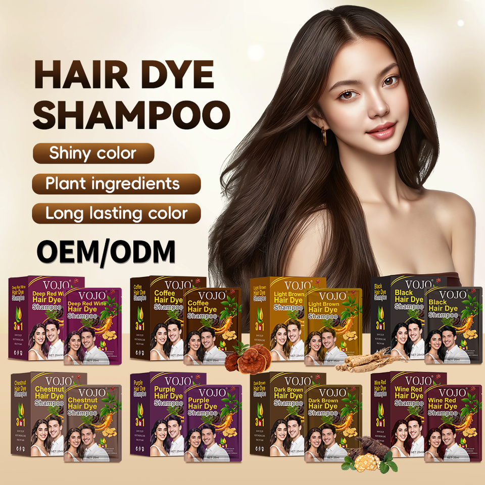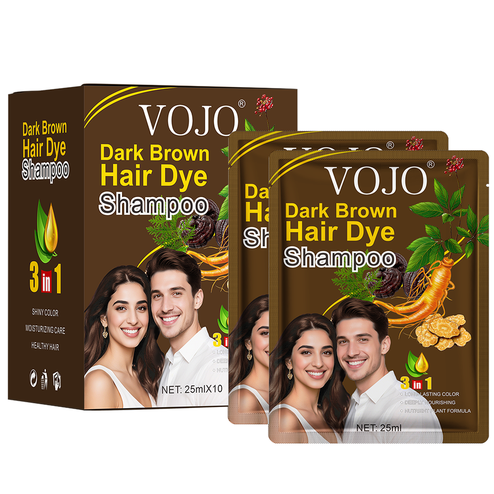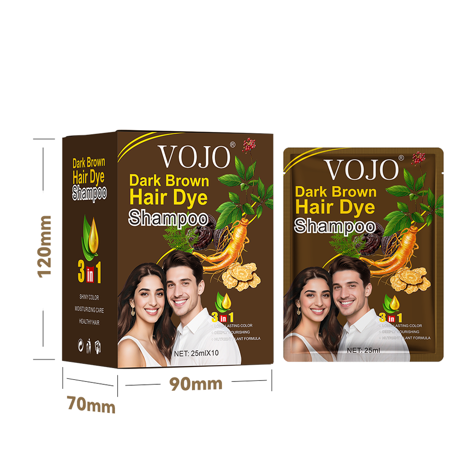 VOJO Dark Brown Hair Dye Shampoo Sachet 25ml*10 Natural Plant-Based Ammonia-Free Formula Bulk Wholesale Factory Direct