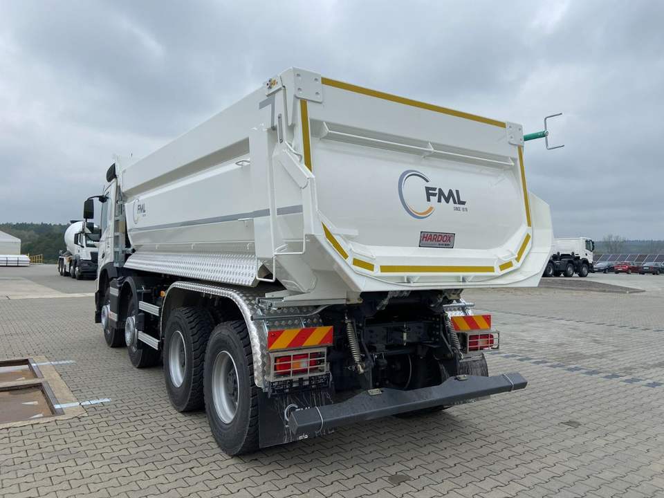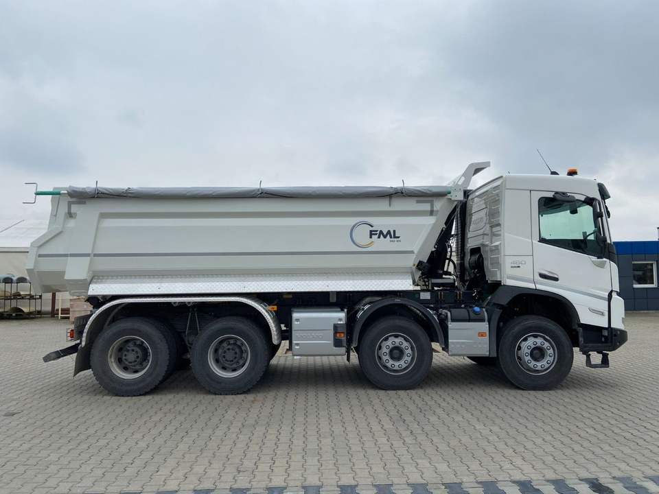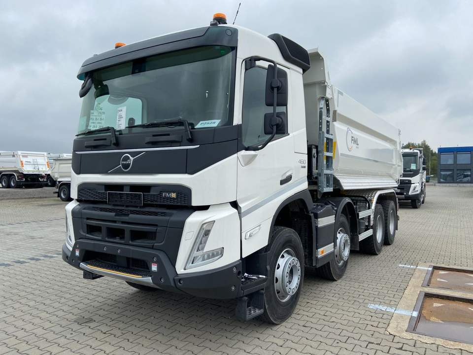 VOLVO FMX/460 8X4 con cassone ribaltabile posteriore, 460 CV, 338 kW, bianco, cambio automatico I-Shift a 16 velocità.