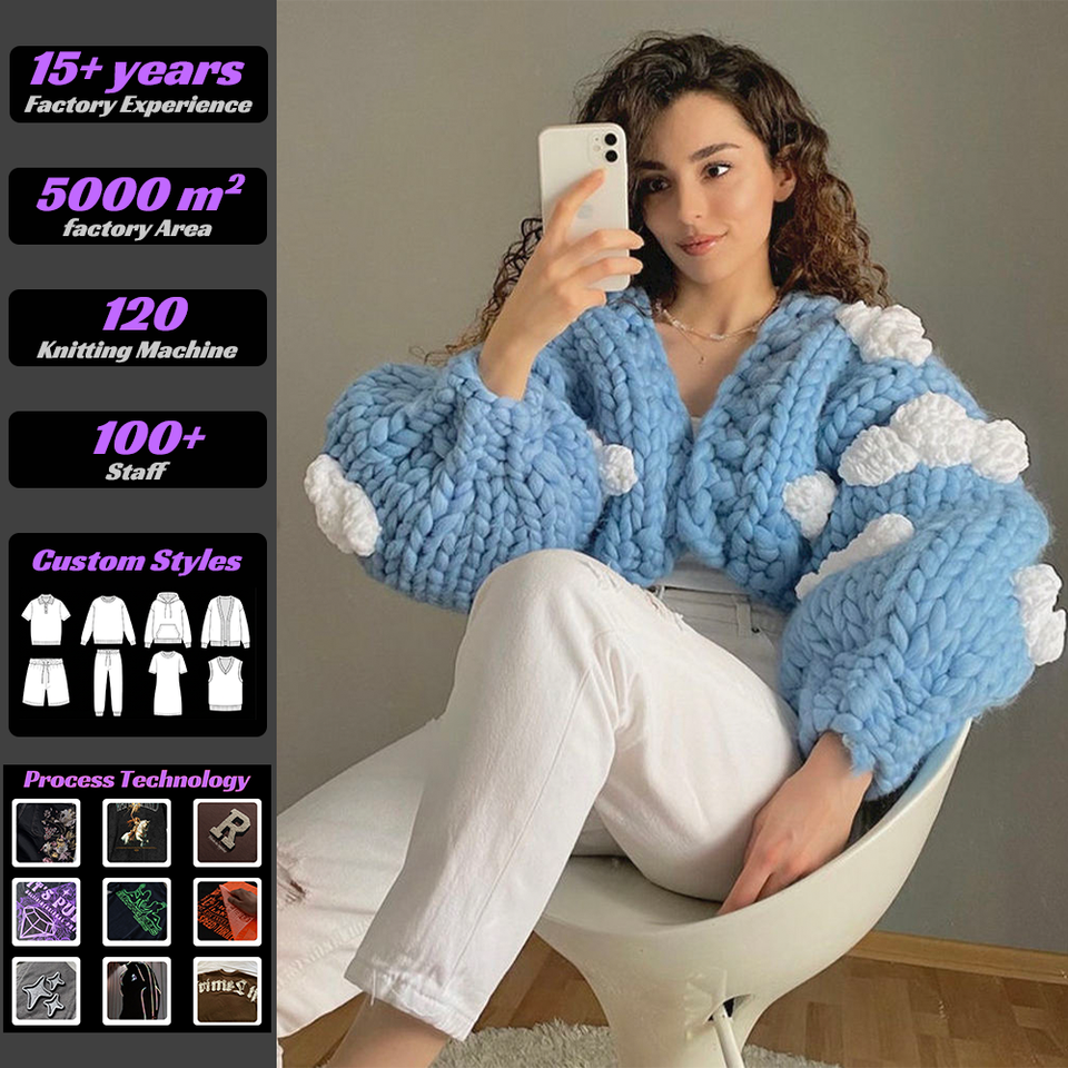 Maglione Oversize Fatto a Mano VSCOO, Cardigan Corto in Maglia 3D a Nuvola, Taglie Grandi, per Donna