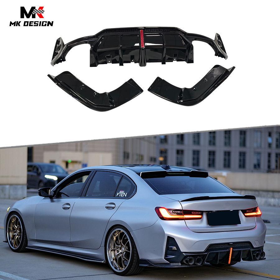 Diffusore labbro paraurti posteriore stile PP per BMW 3 serie G20 G28 LCI 2023 + diffusore posteriore nero lucido ABS splitter laterali alette