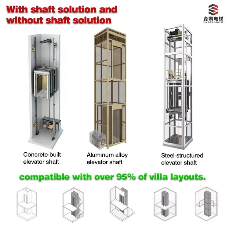 VVVF AC Stainless Steel 630kg 1.0m/s Custom Indoor Residential 2-Floor PVC Electric Elevator with Synmatic Control