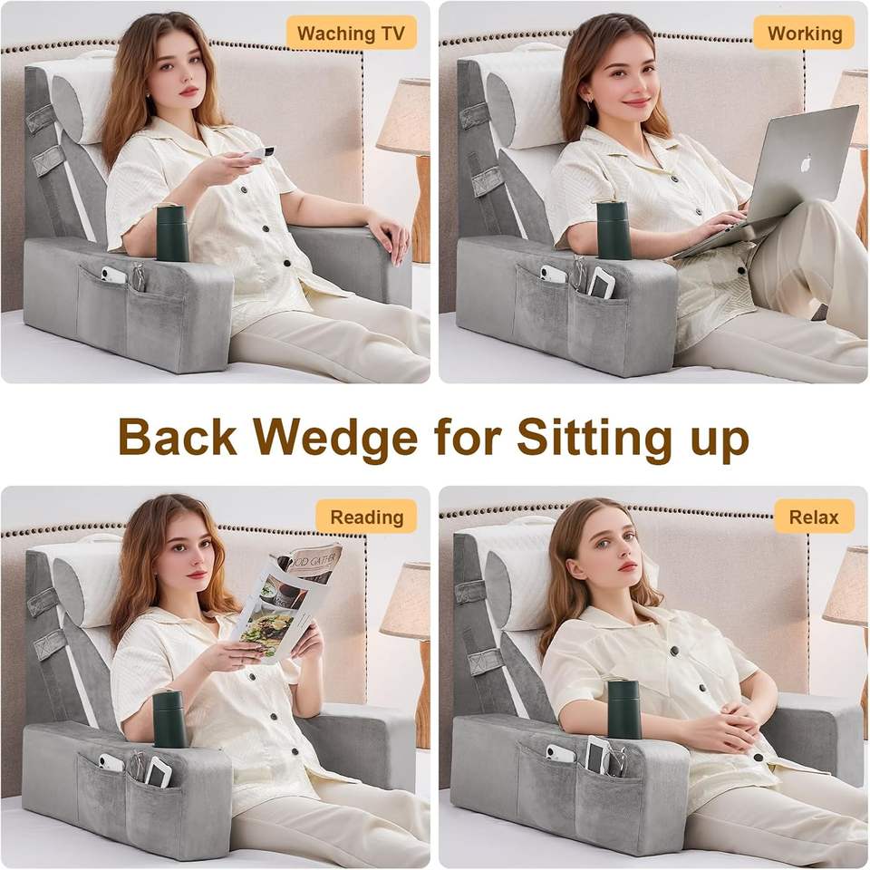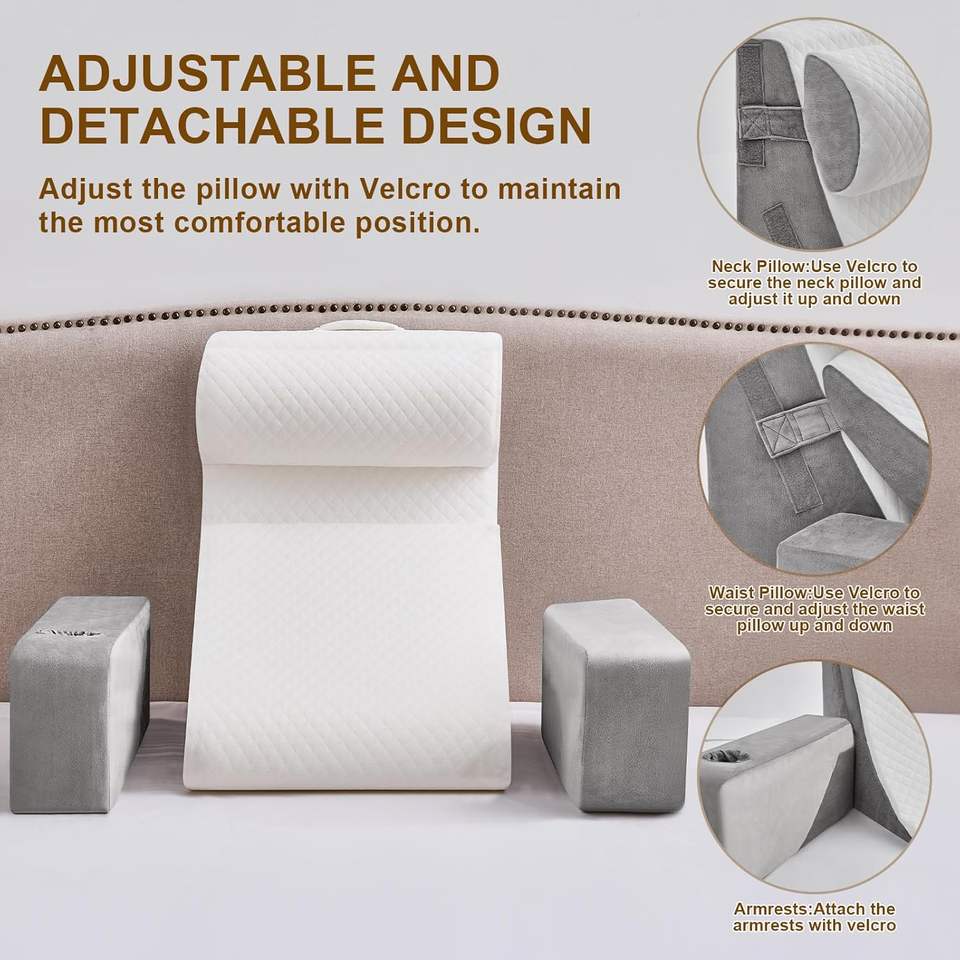 Vacuum Packed Memory Foam Sit up Backrest Pillows for Beds Chair Support, Rest Pillow for Gaming (Light Gray, 5PCS) with Holder