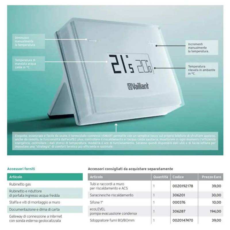 Caldaia a Condensazione Vaillant EcoTEC Plus VMW 30 CS 1-5 CFL 30 kW ERP con Connessione WiFi per Sistemi HVAC Domestici