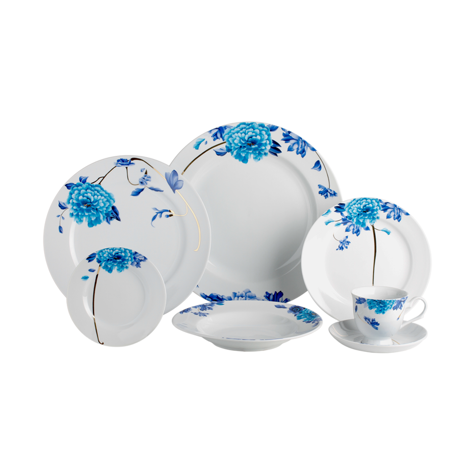 Parole chiave:Set da cena in porcellana con decalcomania dalia azzurra