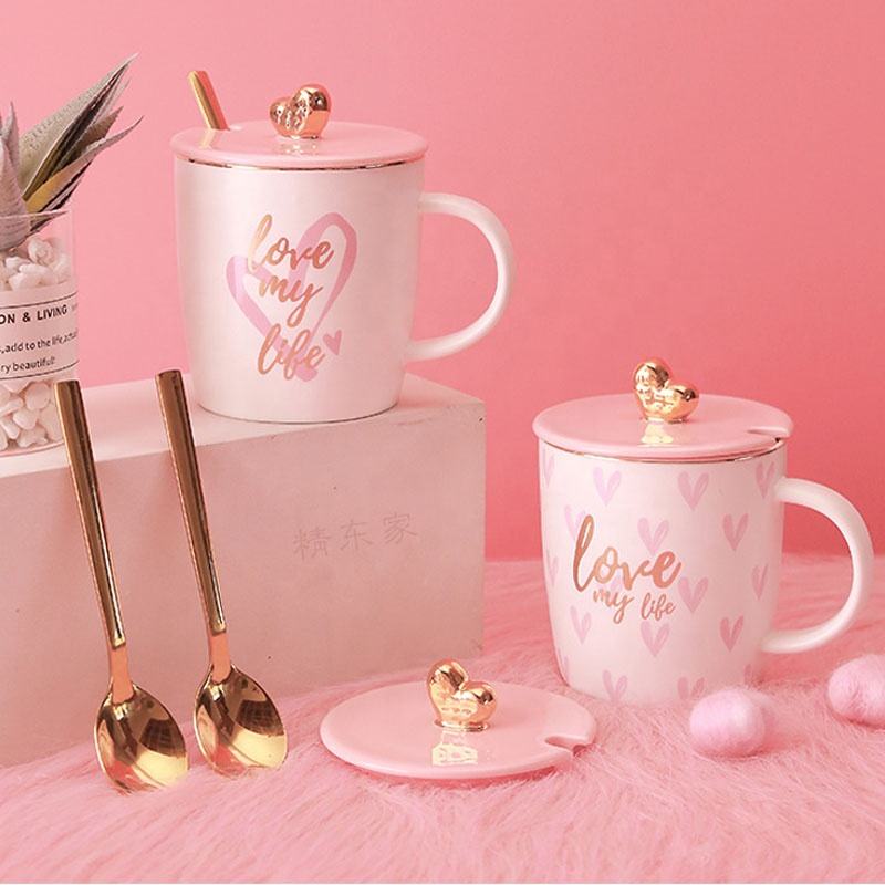 San valentino regali aziendali Logo personalizzato a forma di cuore manico in ceramica porcellana tazza di latte con coperchio 380ml di capacità Design moderno