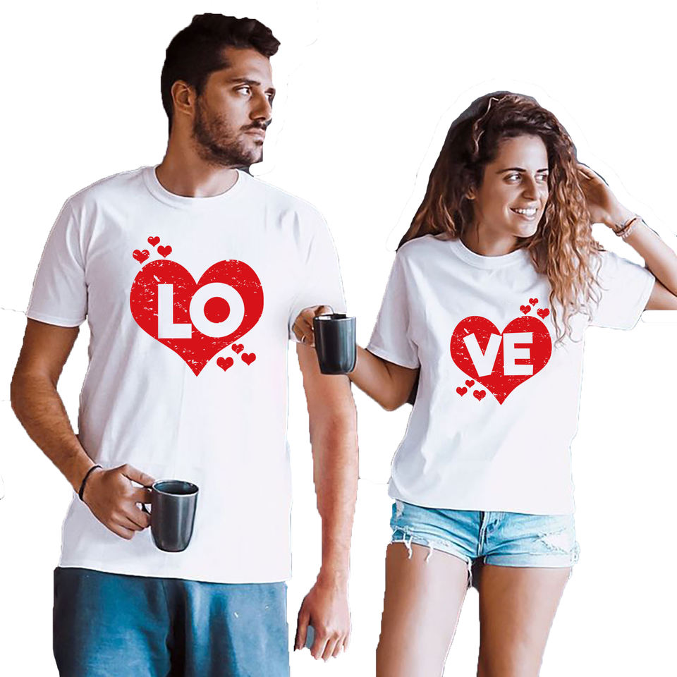 Valentine Day Custom Print Cotton T-Shirt for Lover High Quality Wholesale Tees Casual Romantic Couple Matching Clothing