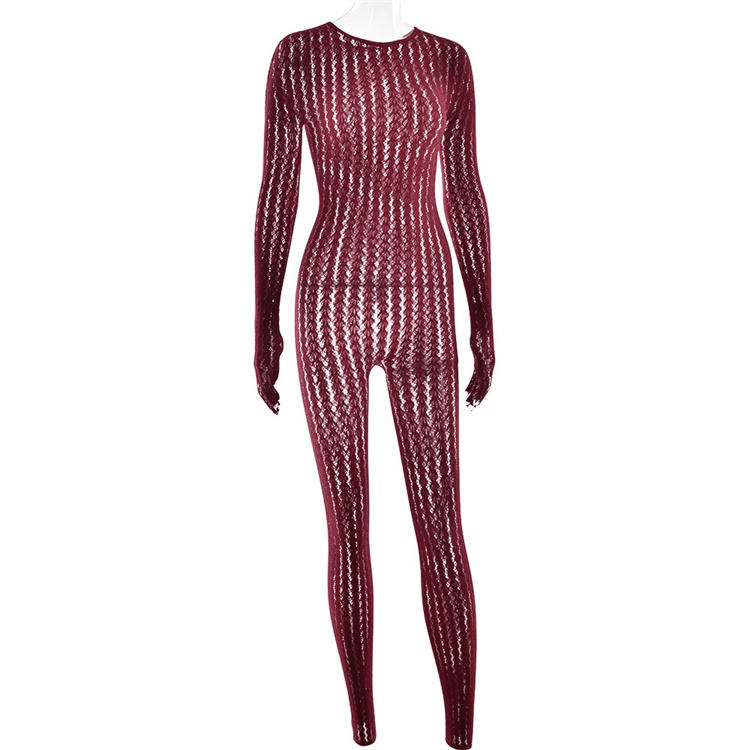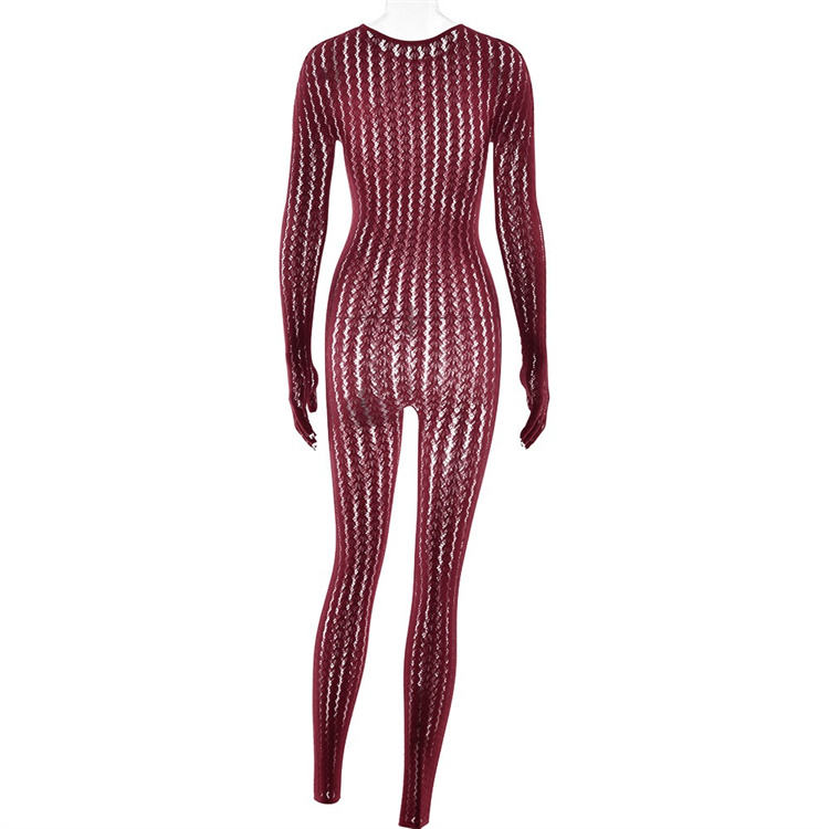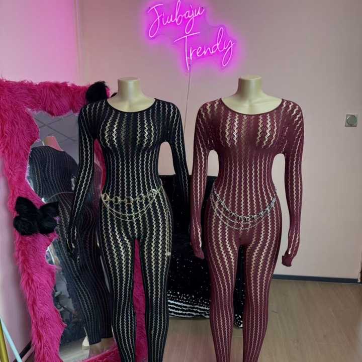 Lingerie Intera Trasparente a Righe Jacquard Senza Cuciture con Maniche Lunghe per San Valentino, Outfit Sexy Nero per Donna