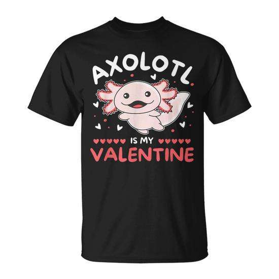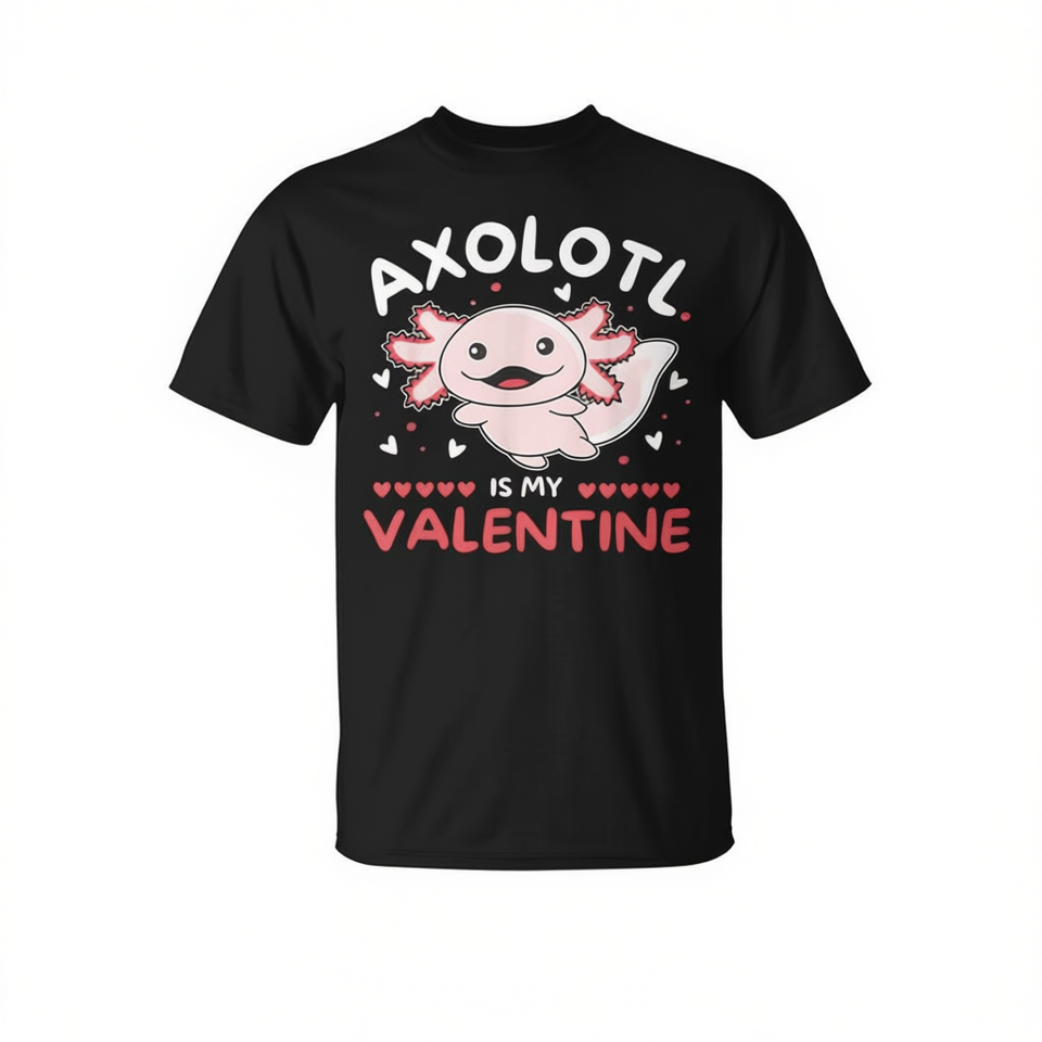 T-shirt con design ispirato all'axolotl per San Valentino - Abbigliamento promozionale con stampa 'Il mio axolotl è il mio valentino'