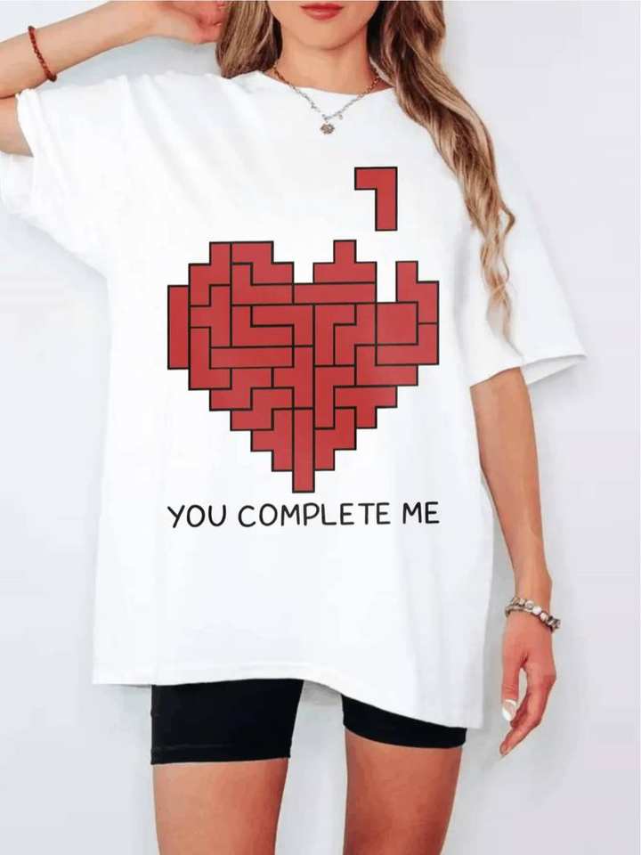 Valentine's Day Couple T-Shirt Geometric Heart Print Crew Neck Regular Sleeve Casual Fit 100% Cotton Spring Summer Wear
