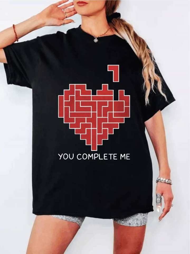 Valentine's Day Couple T-Shirt Geometric Heart Print Crew Neck Regular Sleeve Casual Fit 100% Cotton Spring Summer Wear