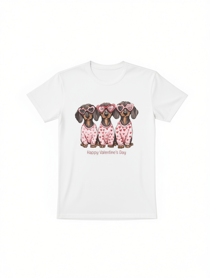 Valentine's Day Dachshund Printed T-Shirt Women's Casual Round Neck Short Sleeve Cotton Jersey Spring Summer Fashion Gift
