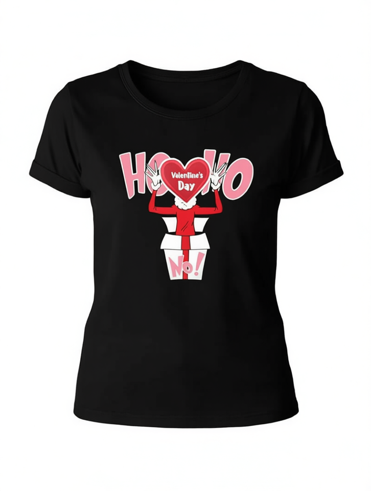 Valentine's Day Fun Printed Crew Neck T-Shirt Women Regular Fit Casual Short Sleeve 100% Cotton Jersey Machine Washable